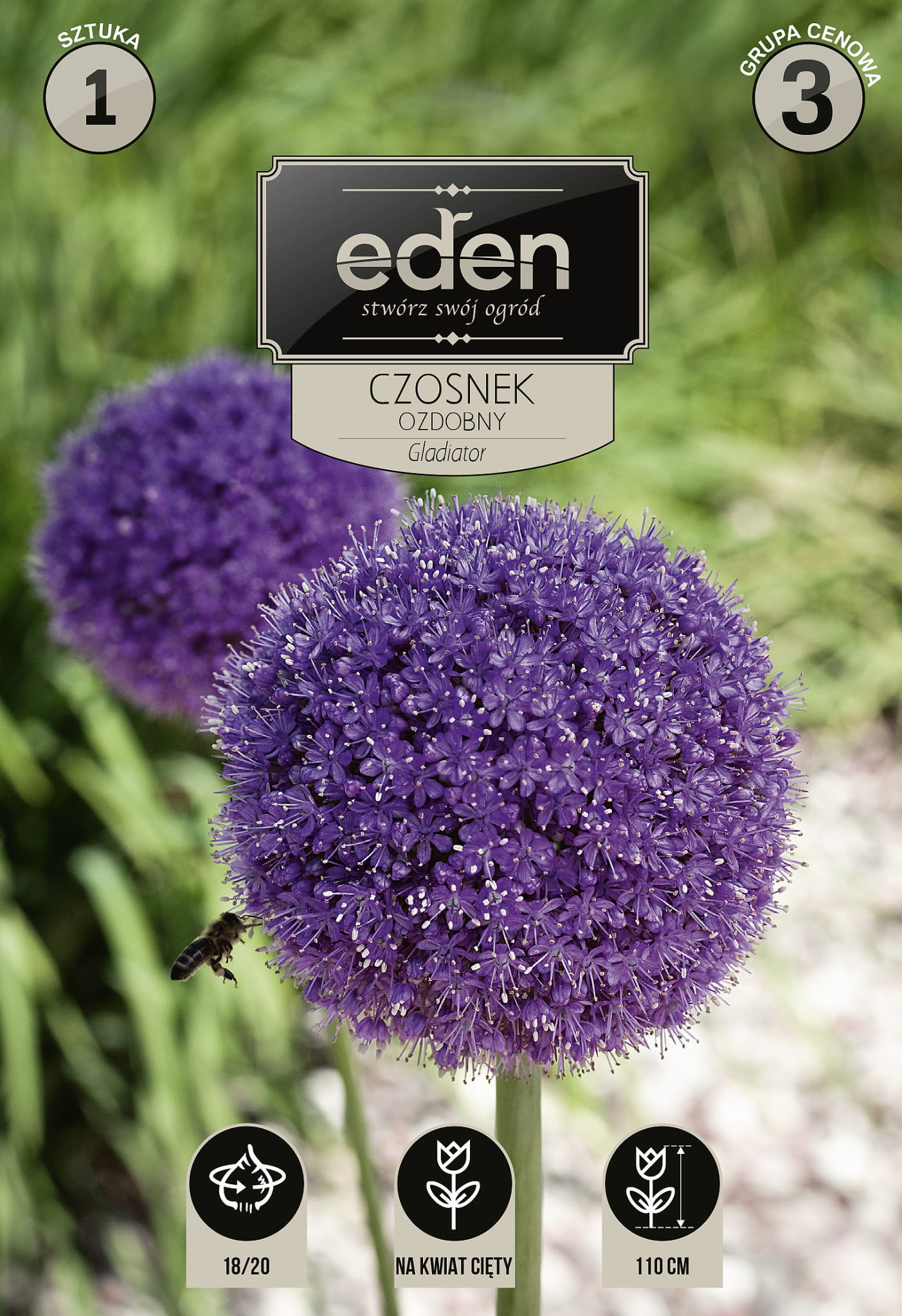 Czosnek ozdobny 'Gladiator' to wysoka odmiana czosnku ozdobnego (Allium) o majestatycznych, kulistych, intensywnie fioletowych kwiatostanach, które osiągają średnicę 15–20 cm (czasem nawet 30 cm). Roślina osiąga wysokość 100–120 cm i kwitnie od maja do czerwca. Jest łatwy w uprawie – preferuje słoneczne stanowiska, żyzną i przepuszczalną glebę oraz jest w pełni mrozoodporny
