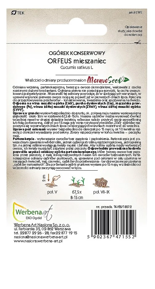 Odmiana wczesna, partenokarpiczna, tworząca owoce ciemnozielone, walcowate z rzadko rozsianymi dużymi brodawkami. Odmiana plenna nie posiadająca goryczki, ta cecha uwarunkowana jest genetycznie . Wczesność tej odmiany powoduje, że w sprzyjających warunkach, w uprawie w gruncie pierwsze owoce mogą się pojawić już w pierwszych dniach lipca. Polecana do przygotowywania przetworów – konserwowania, kwaszenia oraz spożywania na świeżo. Odporna na wirus mozaiki ogórka (CMV), parcha dyniowatych (Ccu), Mączniaka prawdziwego (Px), wirusa żółtej mozaiki dyniowatych (ZYMV), wirusa żółtej mozaiki ogórka (CVYV). Uprawa w gruncie: wysiew bezpośrednio do gruntu, ok. połowa maja. nasiona wysiewa się na głębokość około 2cm w rozstawie 67,5×8-15cm. Nasiona ogórków można wysiewać również wcześniej nawet w drugiej dekadzie kwietnia, wówczas należy przykryć rzędy agrowłókniną lub folią perforowaną, odkryć po 15 maja gdy minie ryzyko przymrozków. Zbiór ogórków rozpoczyna się w pierwszych dniach lipca i w sprzyjających warunkach może trwać do września.