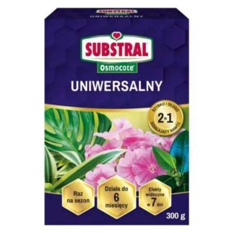 Nawóz Substral Osmocote 2w1 uniwersalny jest przeznaczony do roślin domowych i balkonowych. Wspiera ich rozwój i umacnia korzenie. Zbiór skutecznych mikroelementów szybciej dostaje się do pędów, jeśli są one obficie podlane po użyciu produktu. Zadbaj o solidne nawodnienie po zastosowaniu nawozu. Nawóz jest skuteczny do pół roku po aplikacji.