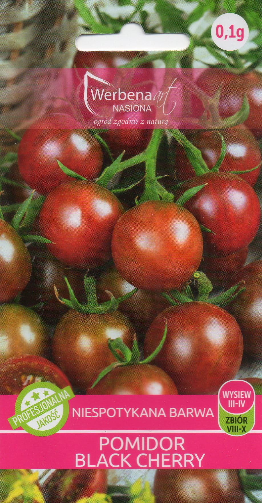 Pomidor wysoki (200 – 250 cm) z owocami typu koktajlowego w ciemnym kolorze. Musi rosnąć podwiązany przy podporach. Owoc świetny w smaku – słodki, delikatnie kwaskowy, soczysty, skórka średnio gruba. Liście są duże i można tworzyć z tej odmiany piękne, zielone parawany. Wschody następują po 7-14 dniach